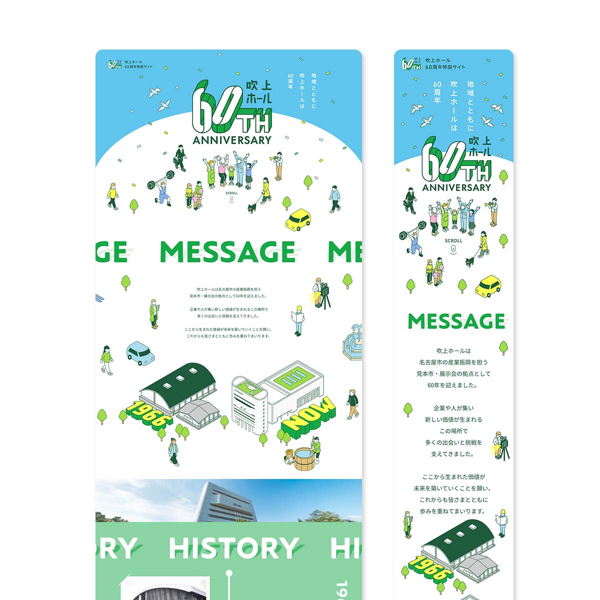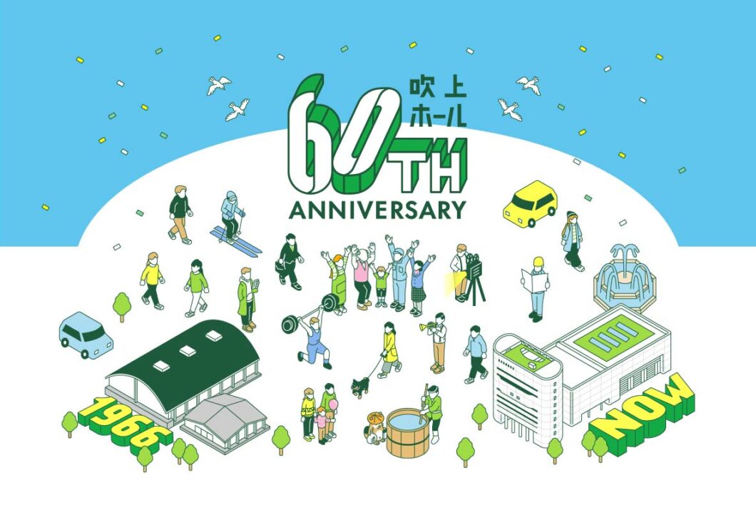 吹上ホール/60周年特設サイト 名古屋市の大規模コンベンション施設・吹上ホールの60周年を記念した特設サイトのデザインおよびロゴ・キービジュアルを制作させていただきました。 Design /Illustration:海野悠(TRAM) #web#デザイン#イラスト#ロゴ